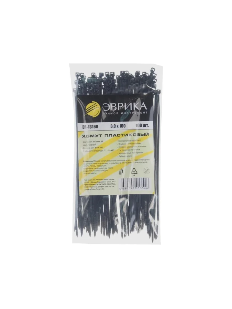 | Наименование | Хомут-стяжка 160х3.0 пластик черный (100шт.) ЭВРИКА ЭВРИКА er-13160 в Сургуте ХМАО |