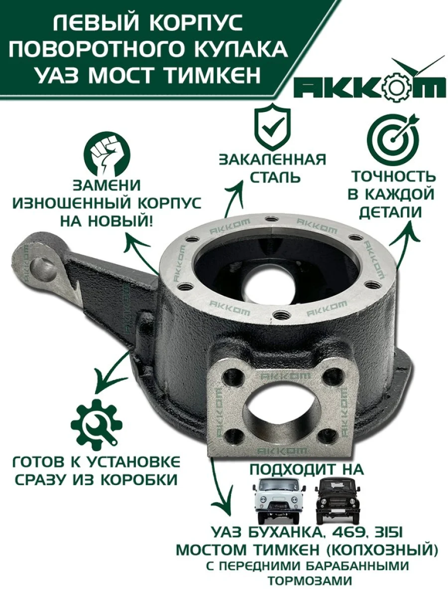 | Наименование | Корпус УАЗ-3151 3741 кулака поворотного левый АККОМ в Сургуте ХМАО |