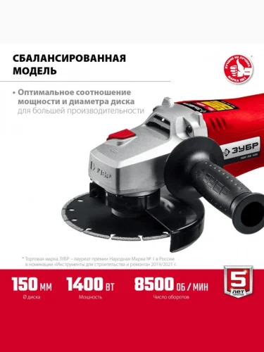 Машина углошлифовальная 1400Вт 150мм 8500обмин. ЗУБР ЗУБР ушм-150-1405 в Сургуте ХМАО