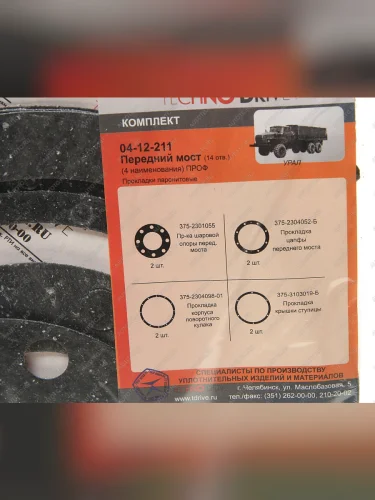 Ремкомплект УРАЛ моста переднегозаднегосреднего паронитовые прокладки (4 наим.) (АО АЗ УРАЛ) УРАЛ АЗ АО 04-12-211 в Сургуте ХМАО